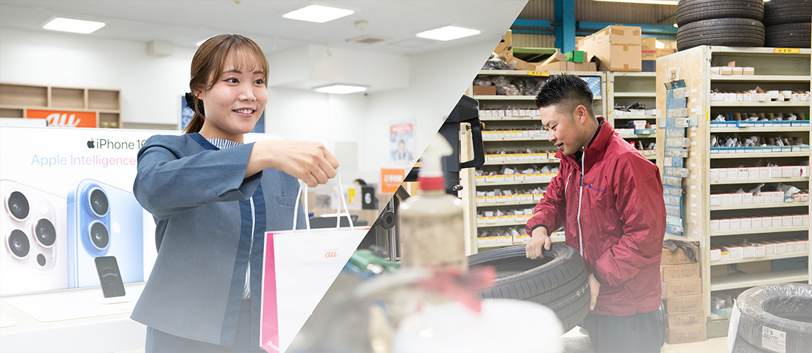 当社は1961年、東京都武蔵野市にて産声を上げました。それ以来、60年以上の長きにわたり地域の皆様に支えられ、愛されて今日に至ります。主な事業は、携帯電話キャリアショップ(auショップ)の運営、携帯電話の法人営業、スマホスクールの運営、自動車部品の販売で、地域に密着した店舗展開・企業活動を行っています。
