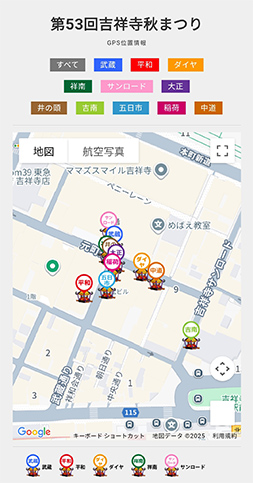 どの神輿がどこにあるのかリアルタイムにわかると、お目当ての神輿を見に行くことができてとても便利。
